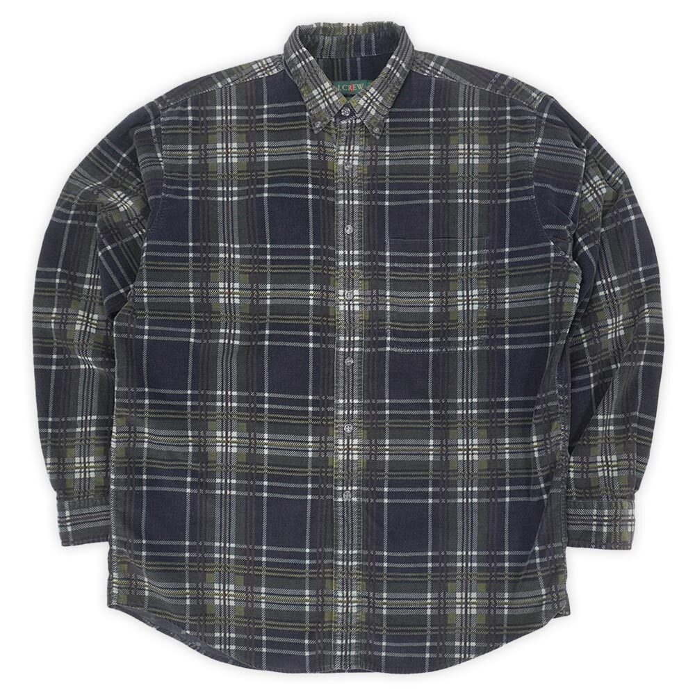チェック柄がプリントされたコーデュロイをオーセンティックなBDシャツに仕立てた、Jクルーらしい遊び心を感じる一枚。黒に近い濃紺ベースの柄は雰囲気抜群で、コンディションも上々のグッドレギュラーです。