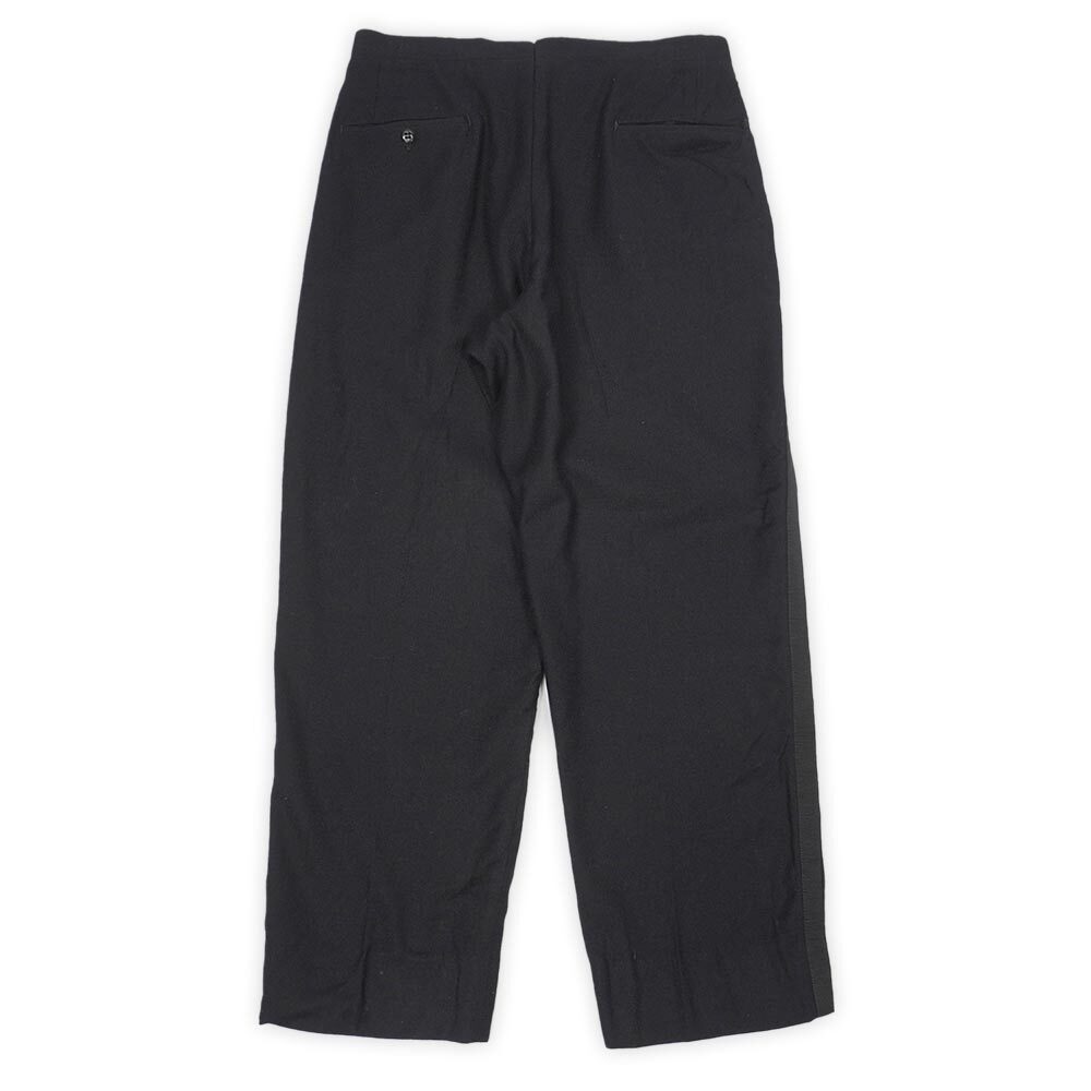 ブランドタグは見当たりませんが、アルミ製のタロンジップやウエスト内側に付くサスペンダーボタン等から1950年代頃に製造された推測される個体。ブラックのボディと同色のテープがサイドに縫い付けられたクラシカルな仕様で、ウール物の泣き所でもある虫食いや型崩れが少ない上々のコンディションも魅力です。