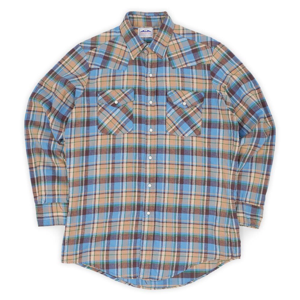 名門ファイブブラザーの兄弟ブランドとして瓜二つの質の良いネルシャツを輩出しているダコタですが、こちらは珍しいウエスタンシャツ。素材は薄手のコットンフランネルでボタンのストーンは欠損なく完品、好配色のチェック柄も雰囲気上々のおすすめの一枚です。