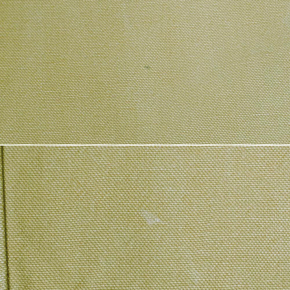 フロントはCarharttのペインター、バックはPatagoniaのスタンドアップと本来共存するはずがない他社の2種をMIXさせたような、非常に珍しい仕様の一本。カーハートと比べやや薄手で柔らかな生地は履き心地も抜群で、裾上げされておりますが画像の通り自然なアタリが出ております。