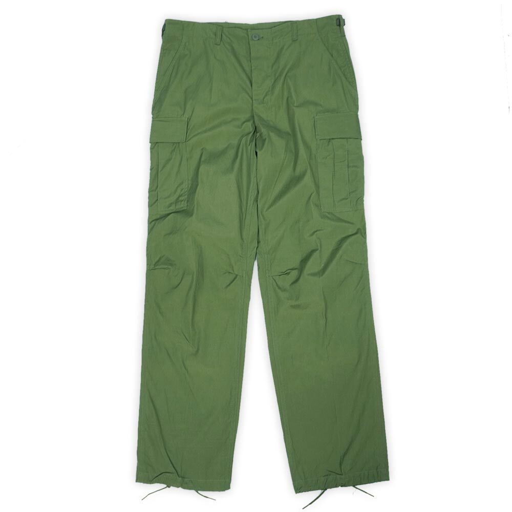 枯渇が進むベトナム戦争時に官給された人気種ですが、こちらは通称ノンリップと呼ばれるコットンポプリンを使用した『3rd』モデル。さらに大きめサイズではありますが未使用のデッドストックで、ウエストのアジャスターがブラックというのも他であまり見掛けない珍しいディテールです。