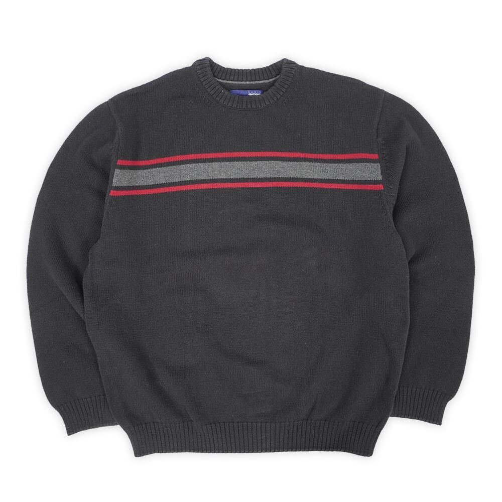 マルチボーダーTeeのイメージが強いブランドですが、こちらは使い勝手の良いコットン素材のセーター。人気の黒ボディのフロントにのみラインが配されたシンプルなデザインで、スウェット感覚でお召しいただけるグッドレギュラーです。