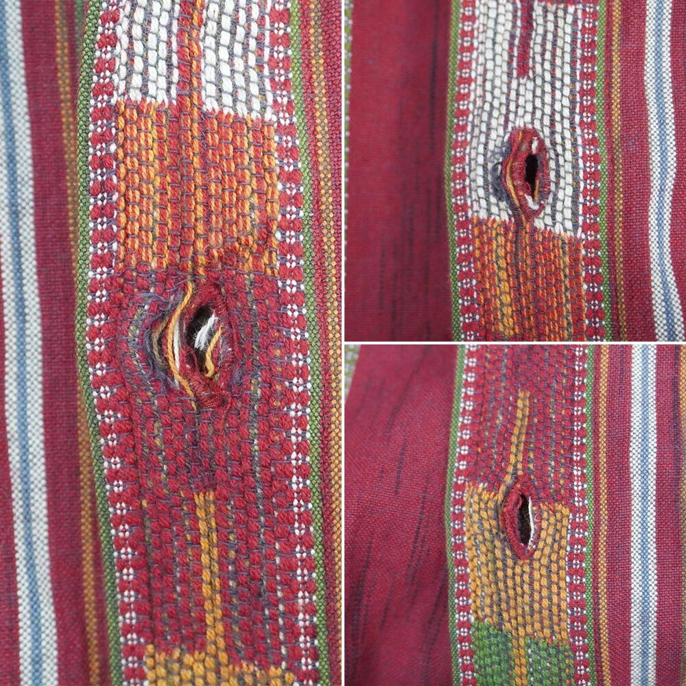 他ブランドにはまず見られない一風変わった生地の選定に定評があり、じわじわと密かなフリークが増えている当店注目のブランドです。こちらは所謂ガテマラシャツ等で見られるような中南米チックな柄が織り込まれた、雰囲気抜群のマルチストライプ柄が目を引く一枚。