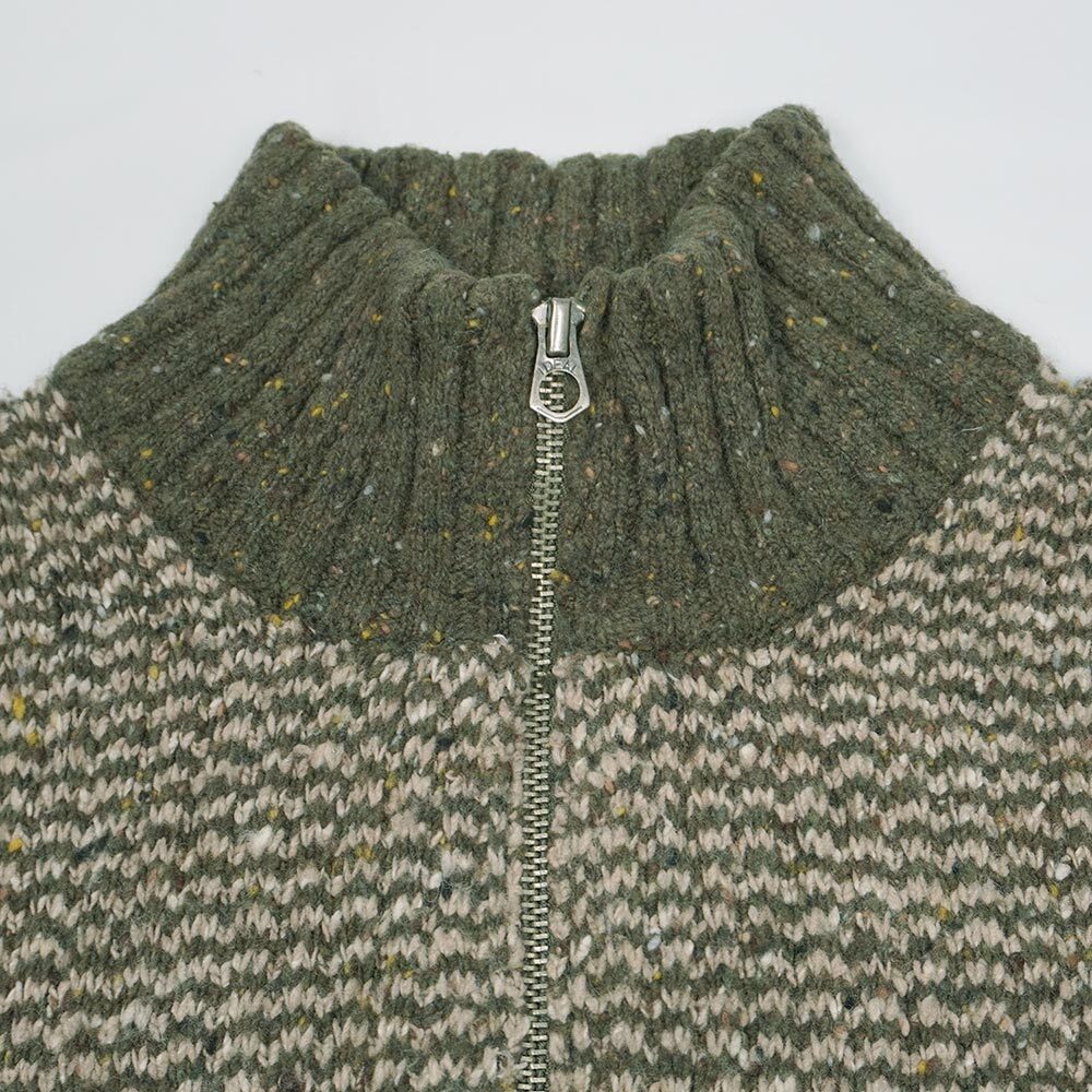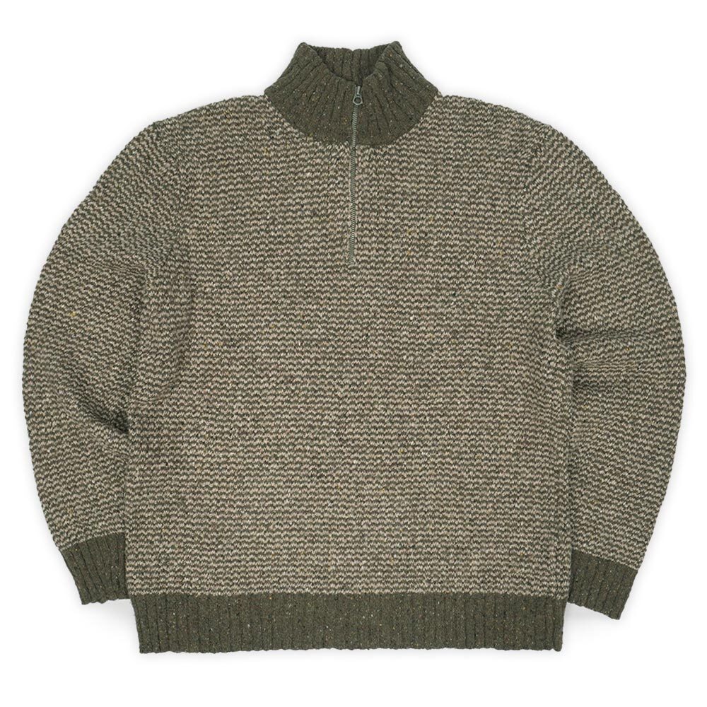 雰囲気の良いカラーネップ柄があしらわれた、コットンやナイロンをブレンドすることで軽快で肌触りの良い質感に仕上げられたウールニット。ハイネックのハーフジップ型ですので、様々な着方をお楽しみいただけるグッドレギュラーです。