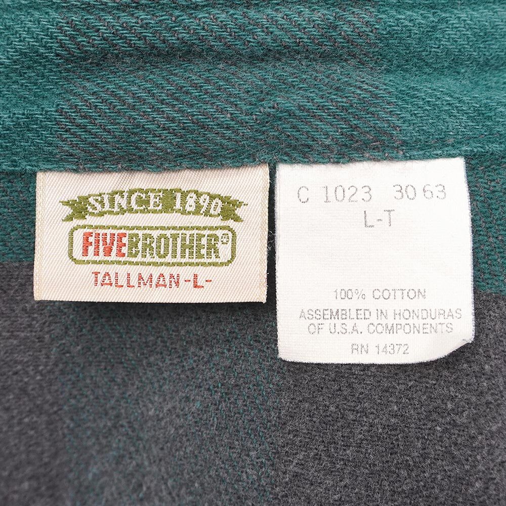 90's FIVE BROTHER ブロックチェック柄 ヘビーネルシャツ "GREEN×BLACK" [mtp03512303257696]