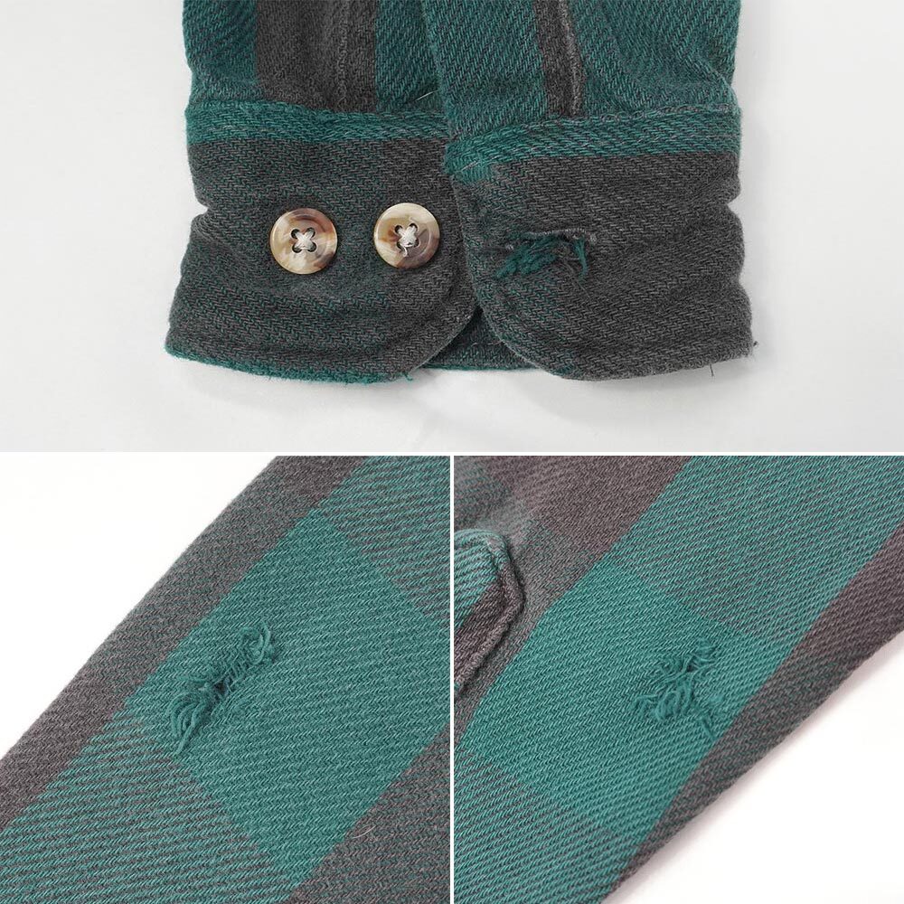 ここ数年で競争率が急上昇したブロックチェック柄のネルですが、こちらはその中でもお探しの方が多いファイブラのオールド物。グリーン×ブラックの定番カラーに加え均整のとれたサイズバランスのおすすめの一枚です。