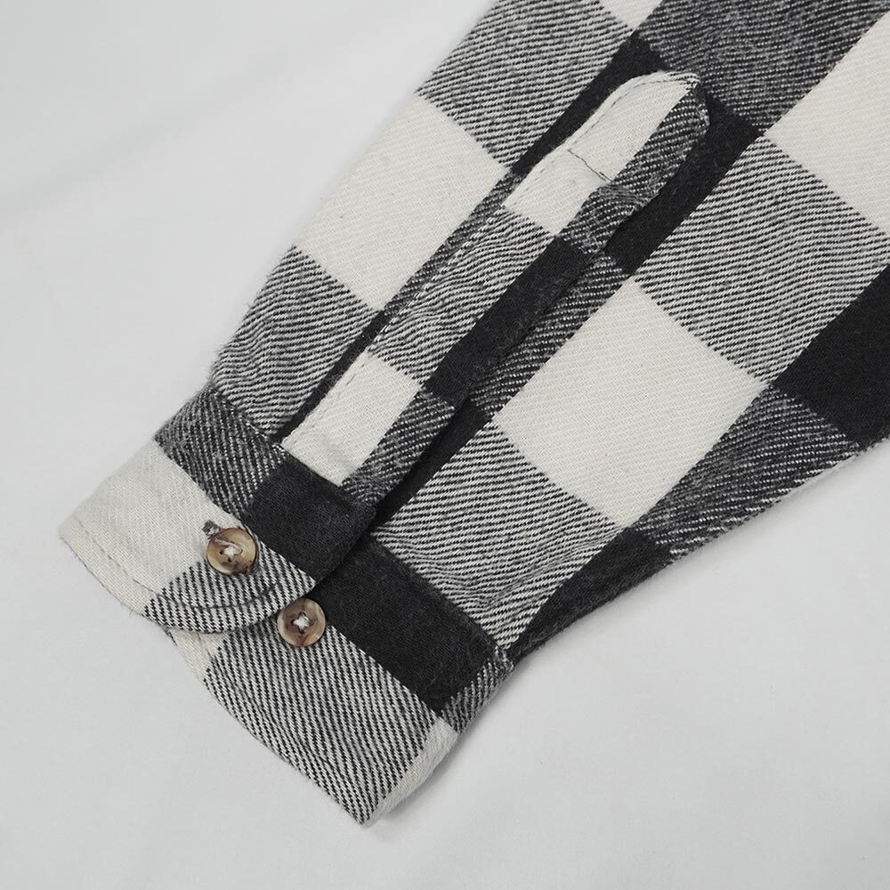 年代やブランドを問わずお好きな方が多い、モノトーンのブロックチェック柄が目を引く一枚。ざっくりと大きめながら身幅が大き過ぎない、均整の取れたシルエットも魅力のグッドレギュラーですので、是非この機会にご検討ください。