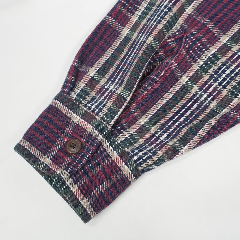 エンジやネイビーをベースに構成された落ち着いたトーンのチェック柄が目を引く、ジョンズべのOLD物。BIG MACと同工場で製造されていた生地が長いことから良品が多く、その割にプライスはまだお手頃ですので是非この機会にご検討ください。