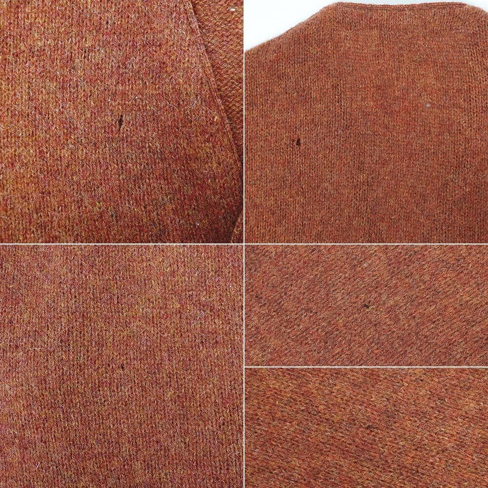 毛足が長いタイプではありませんが、モヘアがMIXされた上質なシェットランドウールで仕立てられたカーディガン。赤みの強いブラウンカラーはいかにも出に水戸の愛称が抜群で、ダメージ等は否めませんがそれらも雰囲気の醸成に一役買っている印象です。