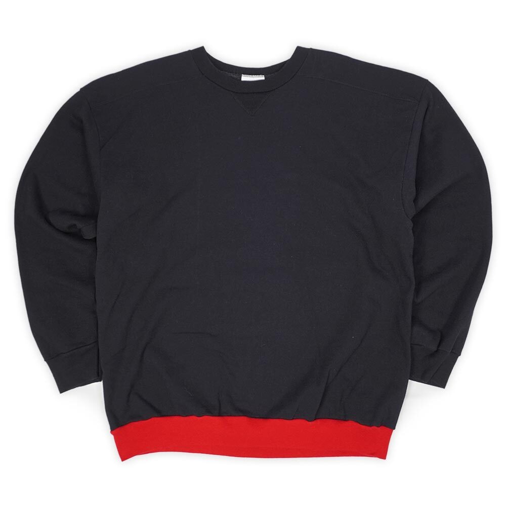 古着市場ではお馴染みのボディメーカーですが、こちらは当店初入荷の稀少種。画像の通り黒ボディに映える真っ赤な裾リブが特徴で、もちろん製造国はアメリカです。