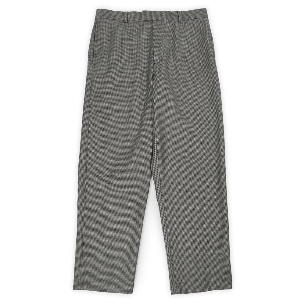 グレー系のハウンドトゥース柄と、癖のないストレートシルエットが魅力の一本。W32 L30表記の均整の取れたサイズバランスやノータックという点もポイントのグッドレギュラーですので、是非この機会にご検討ください。
