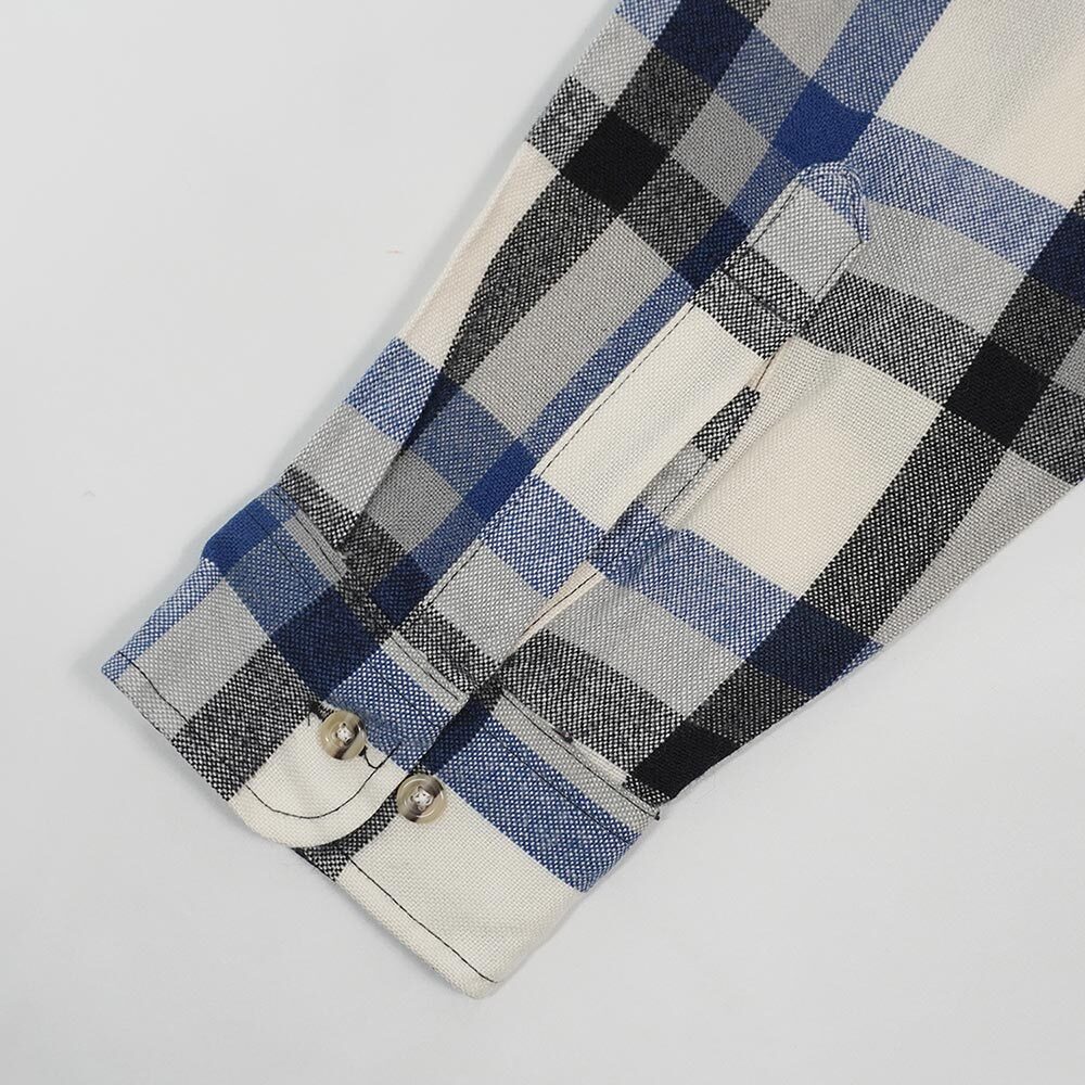 ウールに似た柔らかな生地感が特徴のアクリル素材のフランネルで仕立てられた一枚。形の良いレギュラーカラーに好配色のブルーベースのチェック柄という扱い易い取り合わせが魅力のグッドレギュラーです。