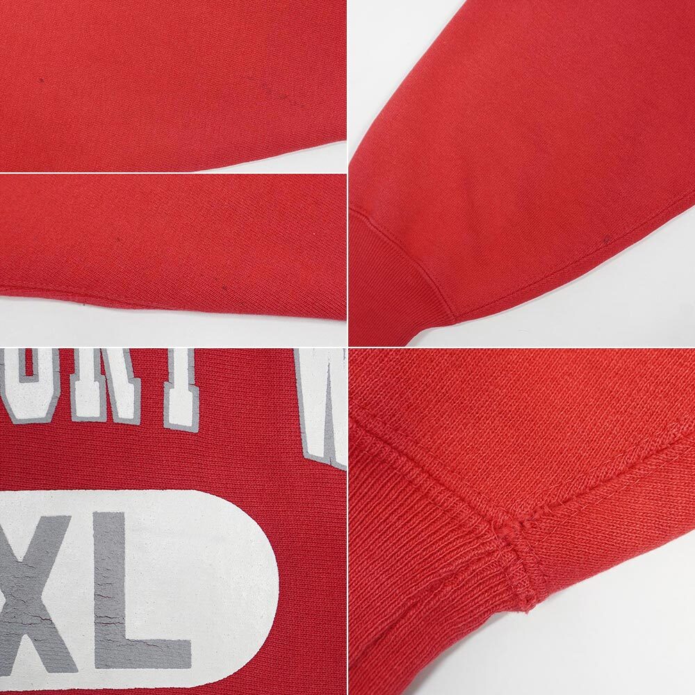 何と言っても5段で構成された豪華で面の良いカレッジプリントが目を引くUSA製のオールド物。赤が程良くエイジングした色味も雰囲気上々で、需要の高いXL表記のゆったりとしたサイズバランスも見逃せないポイントです。