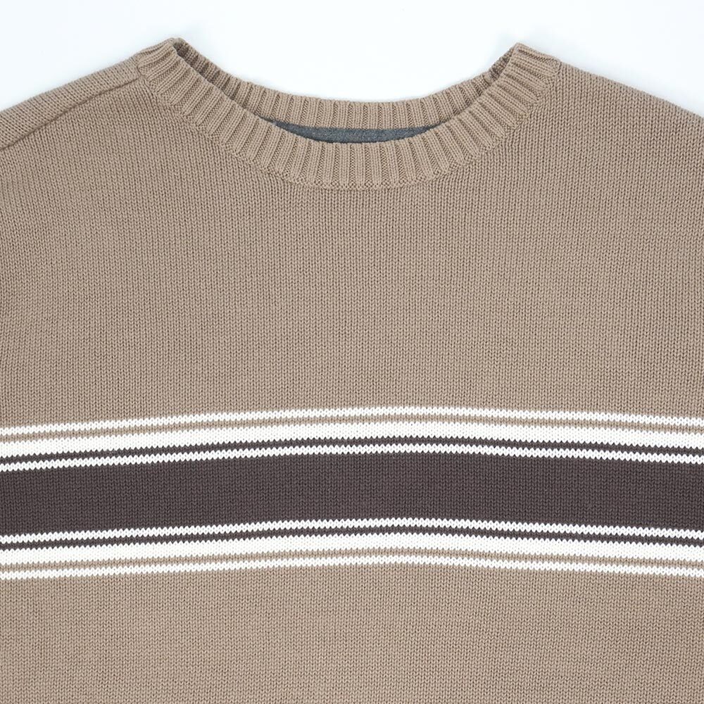 スウェット感覚でお使いいただけご家庭でのメンテナンスも容易な、コットン素材のセーター。前身頃にのみ施されたボーダーの織り柄がポイントのグッドレギュラーです。
