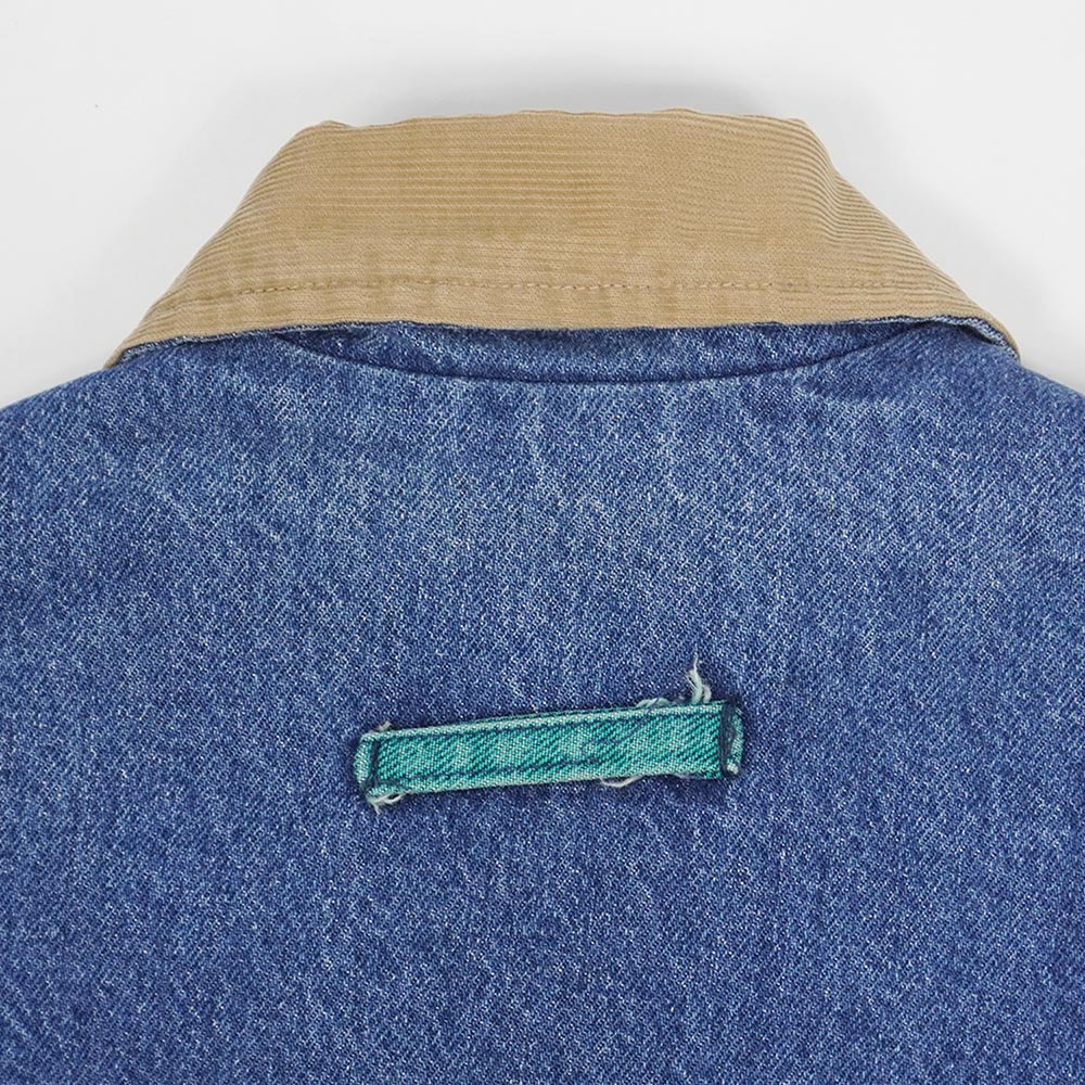 コーデュロイで切り替えされた襟はブランケット素材のライナーが付くカバーオールとしては定番ですが、こちらはあまり見掛けない3ポケット仕様の変わり種。背面上部に縫い付けられたハンガーフックはおそらく前オーナーによるカスタムで、アメリカ古着らしい空気感をお楽しみいただけるグッドレギュラーです。
