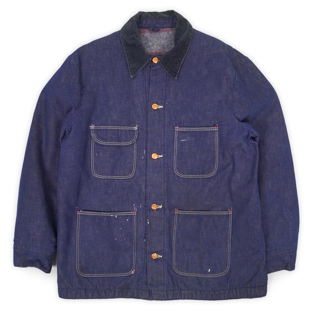 『Wrangler(ラングラー)』の母体としても知られるワークウェアレーベル『ブルーベル』のカバーオールです。デニムのシェルにコーデュロイの襟とブランケットライナーを組み合わせたオーセンティックな仕様で、汚れ等は否めませんがデニム地は濃紺の状態を保っております。
