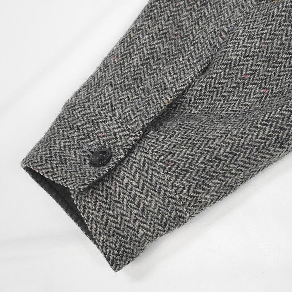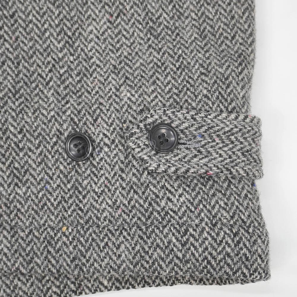 モノトーンのヘリンボーン柄に映えるカラフルなネップが目を引く、非常に上質なウールのブルゾンです。共布のチンストラップが付属しますので、垂らしたり留めて襟を立たせたりと様々な着方が出来るのも高査定ポイント。