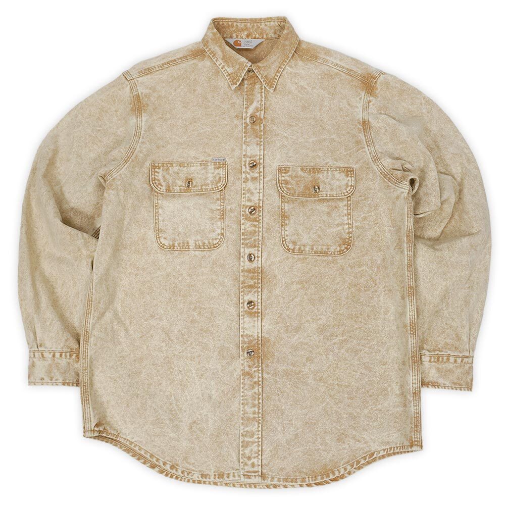 アウターやパンツと比べ玉数の少ないカーハートのシャツ類ですが、こちらは大胆なブリーチ加工が目を引く珍品。表記はございませんがおそらくUSA製で、タフな素材故にハードな加工にも関わらずガシッとした質感を保っている点も魅力です。