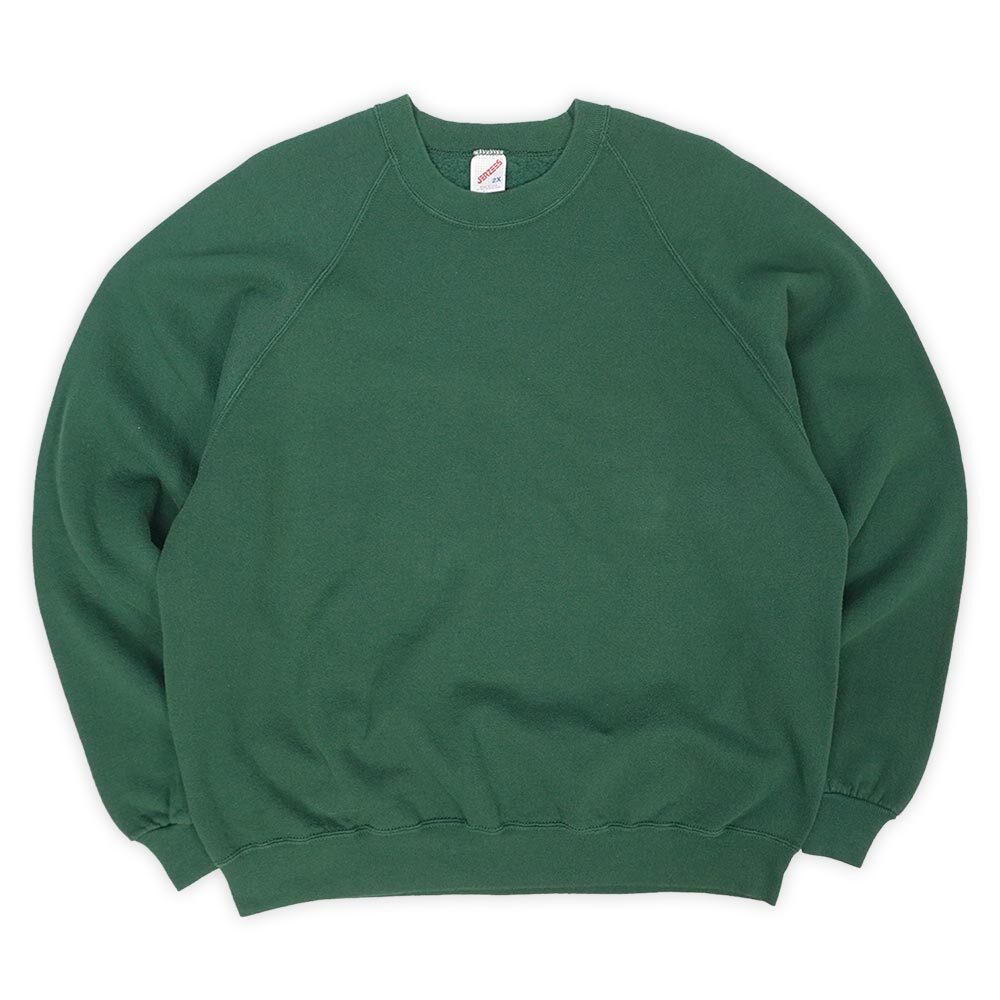 あって困ることのない無地のクルーネックスウェットですが、こちらはラッセル傘下としても知られるジャージーズのOLD物。90年代初頭までにアメリカで製造された個体で、ラグランスリーブと2X表記の大きめサイズも魅力です。