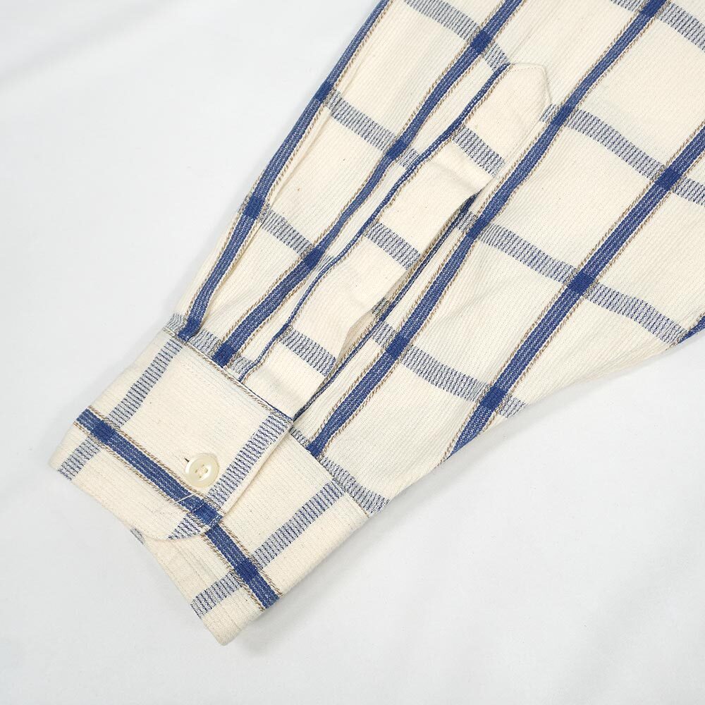 コードレーンやピケに近い僅かに畝感のあるコットン地で仕立てられた、非常に珍しい仕様の一枚。薄汚れや前オーナーによるリサイズ跡が見られますが、いずれも洗濯を繰り消すうちに馴染み目立たなくなると思われます。
