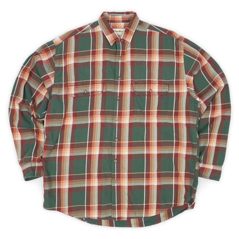 90's Eddie Bauer コットンワークシャツ "白タグ / Green Plaid" [mtp03530401958100]