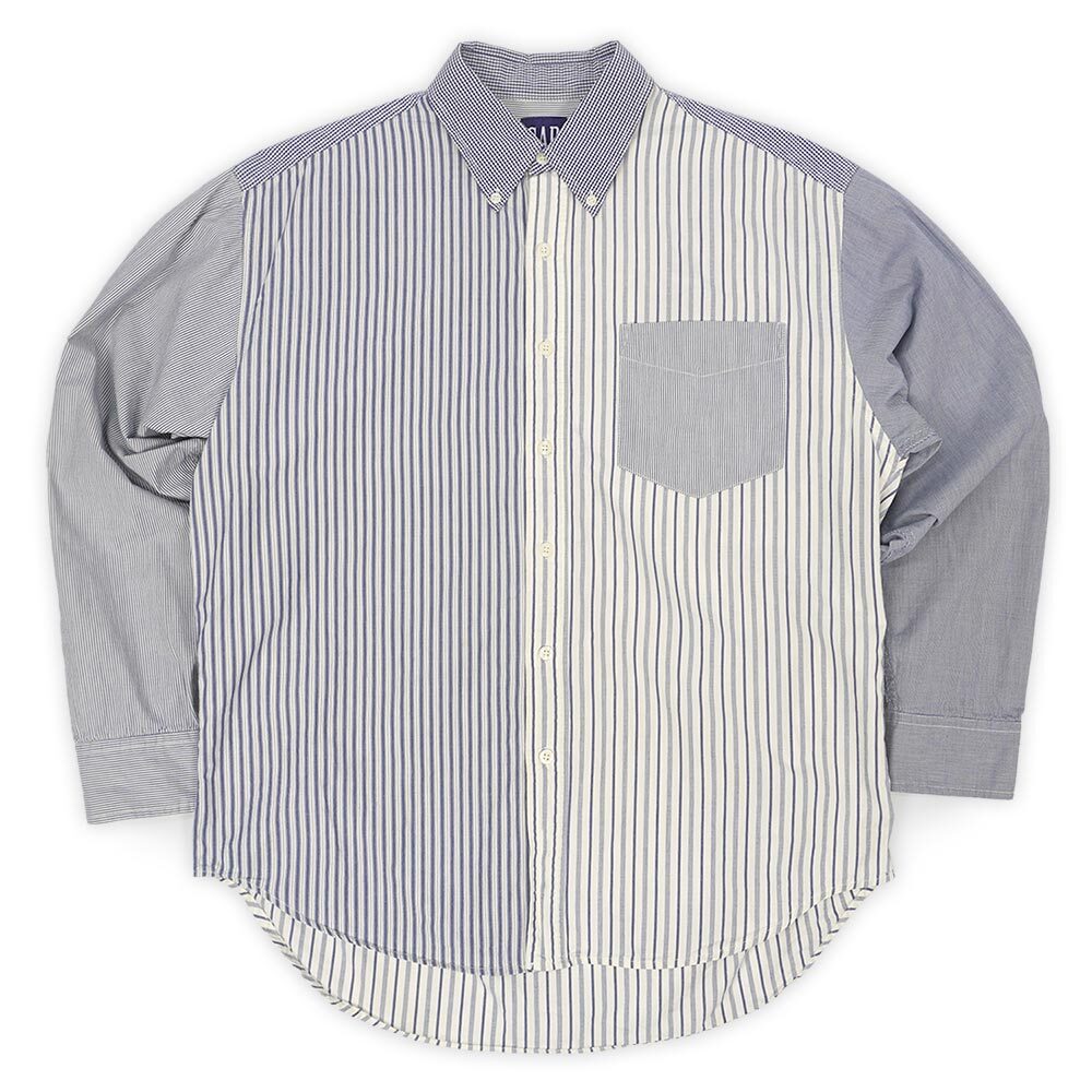 ギンガムチェックやマルチストライプ等、パーツごとに異なる柄の生地で構成されたクレイジーパターン仕様の稀少種。柄は多様ですが色味がブルーや白でまとめられているため、意外にごちゃついた印象がない仕上がりで扱い易いおすすめのグッドレギュラーです。