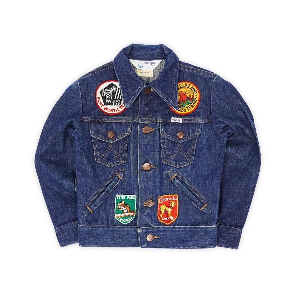 キッズサイズのジージャンに様々なワッペンでデコレーションが施された、唯一無二の個体です。縫い付けられたワッペンはコロラド等のスーベニア物から各地の動物園や水族館の物まで様々で、中には取り外して単品で販売したいクオリティの物も。