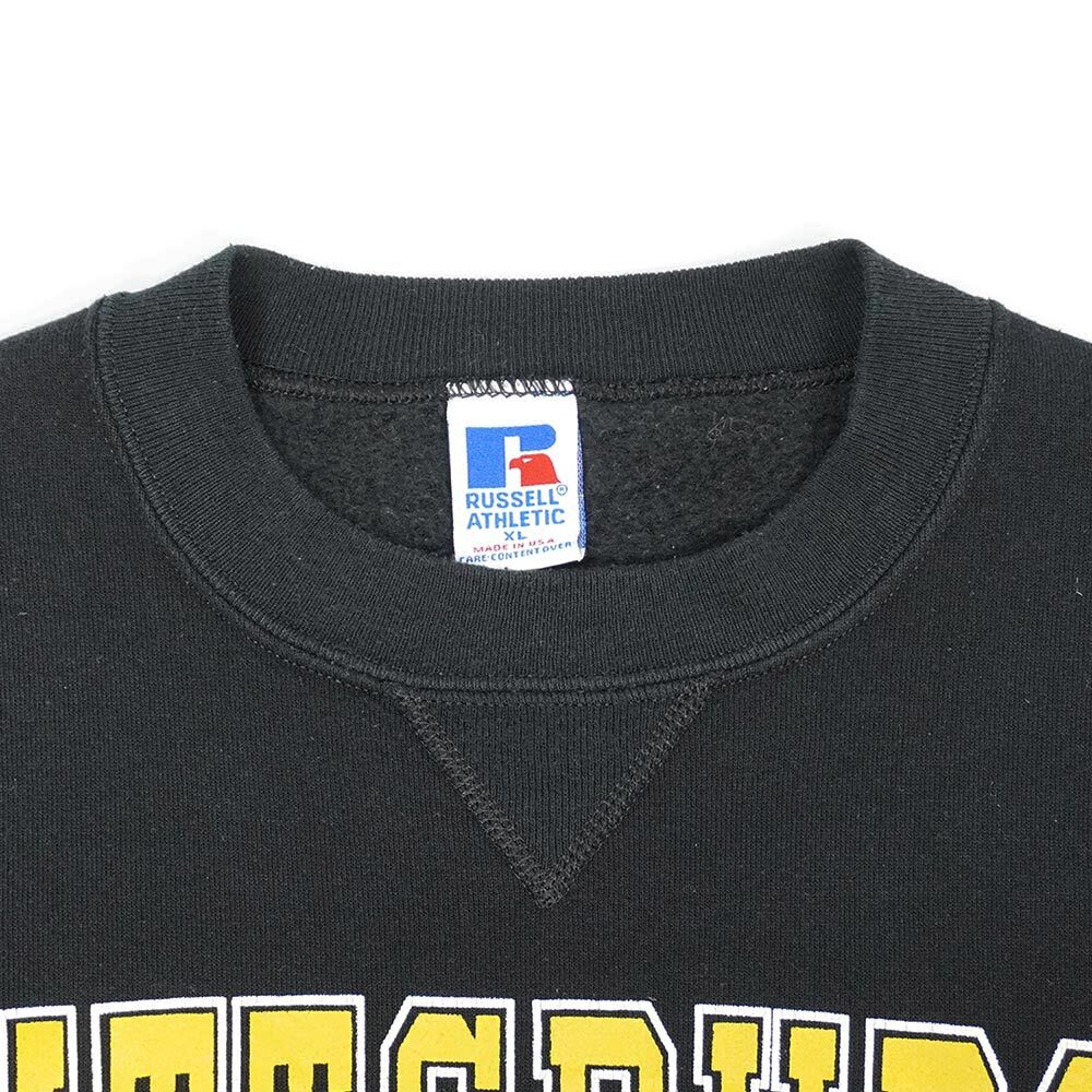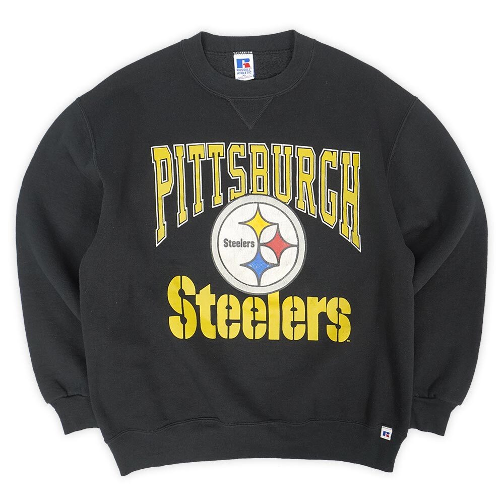 お探しの方が絶えないOLDラッセルですが、こちらはNFLの名門『Pittsburgh Steelers』のプリントが目を引く一点。ボディのお色は一番人気のブラックで、アメリカ製という点も魅力ですので是非この機会にご検討ください。