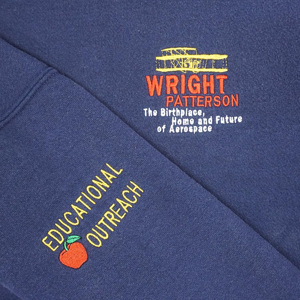 ライト・パターソン空軍基地のスーベニア物と思われる刺繍が目を引く一枚。ボディはお好きな方が多いLee製のもので、フェードしたネイビーカラーも魅力です。