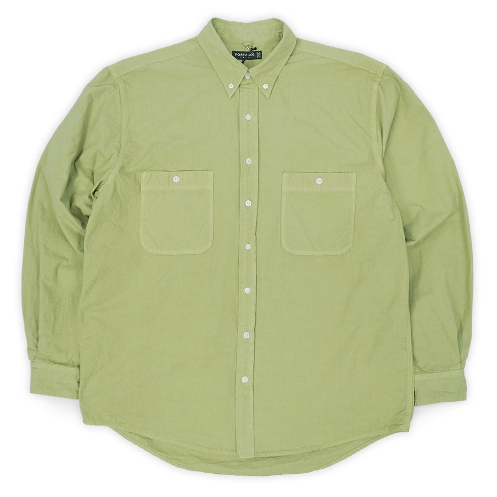 端正なボタンダウン仕様の襟にワークシャツのようなチェストポケットを組み合わせた、今後ポータンスの定番パターンとなる仕様のBDシャツ。