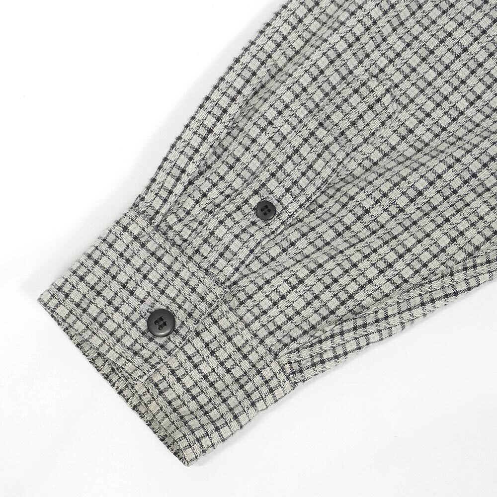 風合い抜群のインド綿を長袖の開襟シャツに仕立てた、あれば必ず重宝するグッドレギュラー。ループ付きのオープンカラーにボックスシルエットという普遍的な組み合わせで、首元が空き過ぎない絶妙なボタンの配置等にも拘りが感じられます。