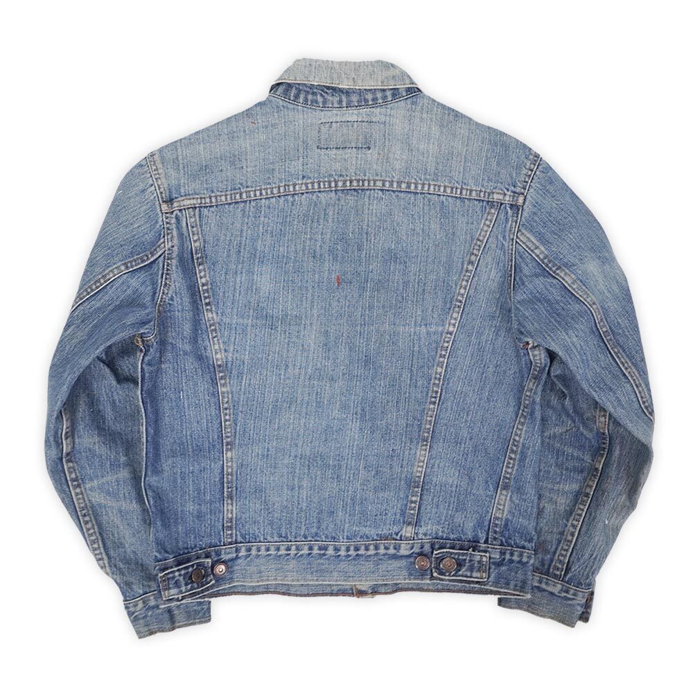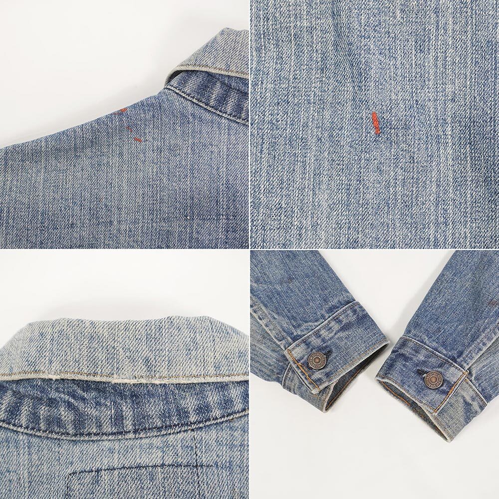 名作557の後継モデルとして製造され『4th』の愛称で知られる70505ですが、こちらは紙パッチの下部に付く白いケアタグが残る70年代末頃に製造された個体。決して濃いとは言えませんが画像の通り縦落ちやハチノスが見られる雰囲気抜群の面構えで、実寸40相当の均整の取れたサイズバランスも魅力です。