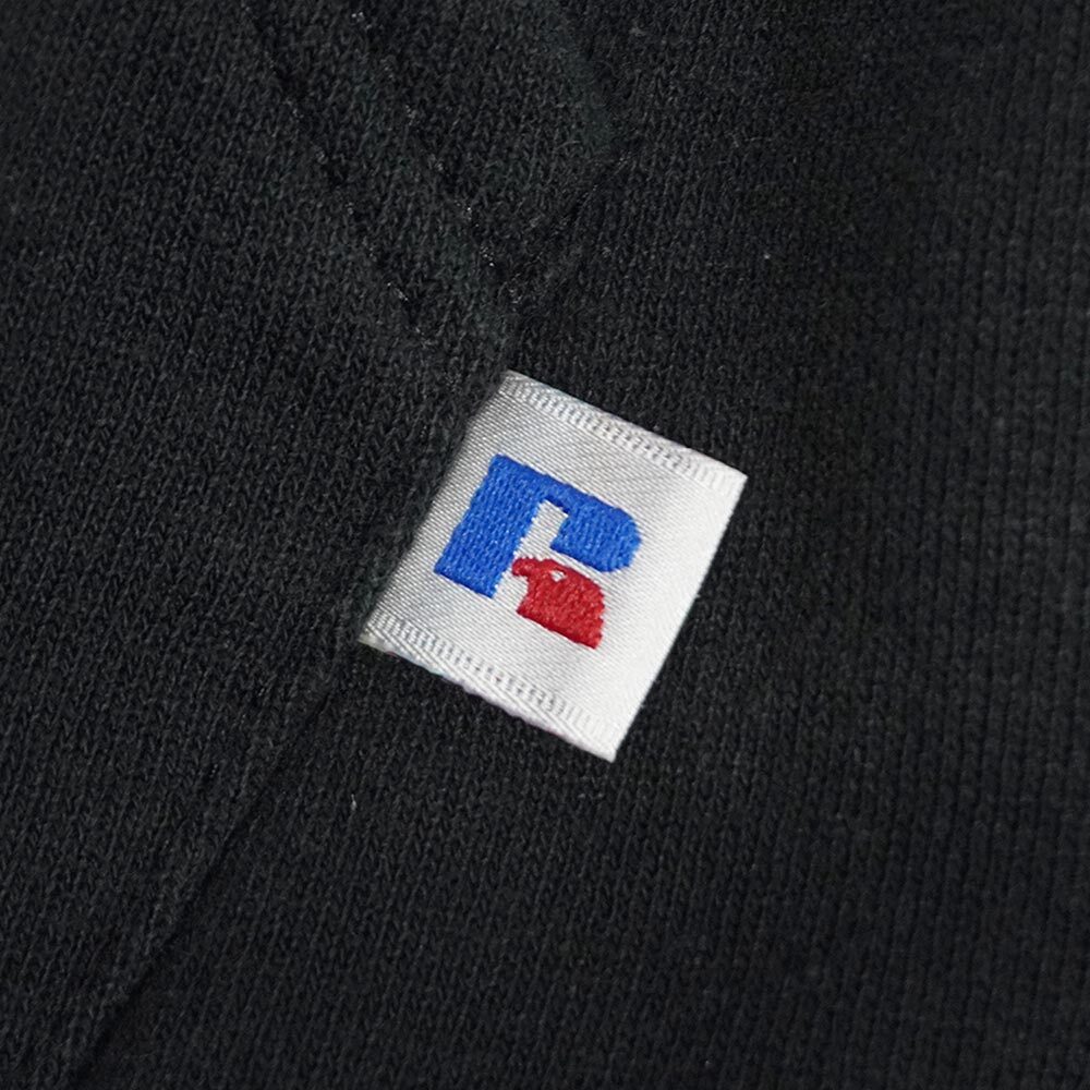 ここ数年でグッと注目度が高まっているラッセルのオールド物ですが、フーディータイプはクルーネックと比べ格段に玉数が少ない印象です。こちらはその中でも一番人気のブラックで、アメリカ製との違いはタグの文言のみですので是非この機会にご検討ください。