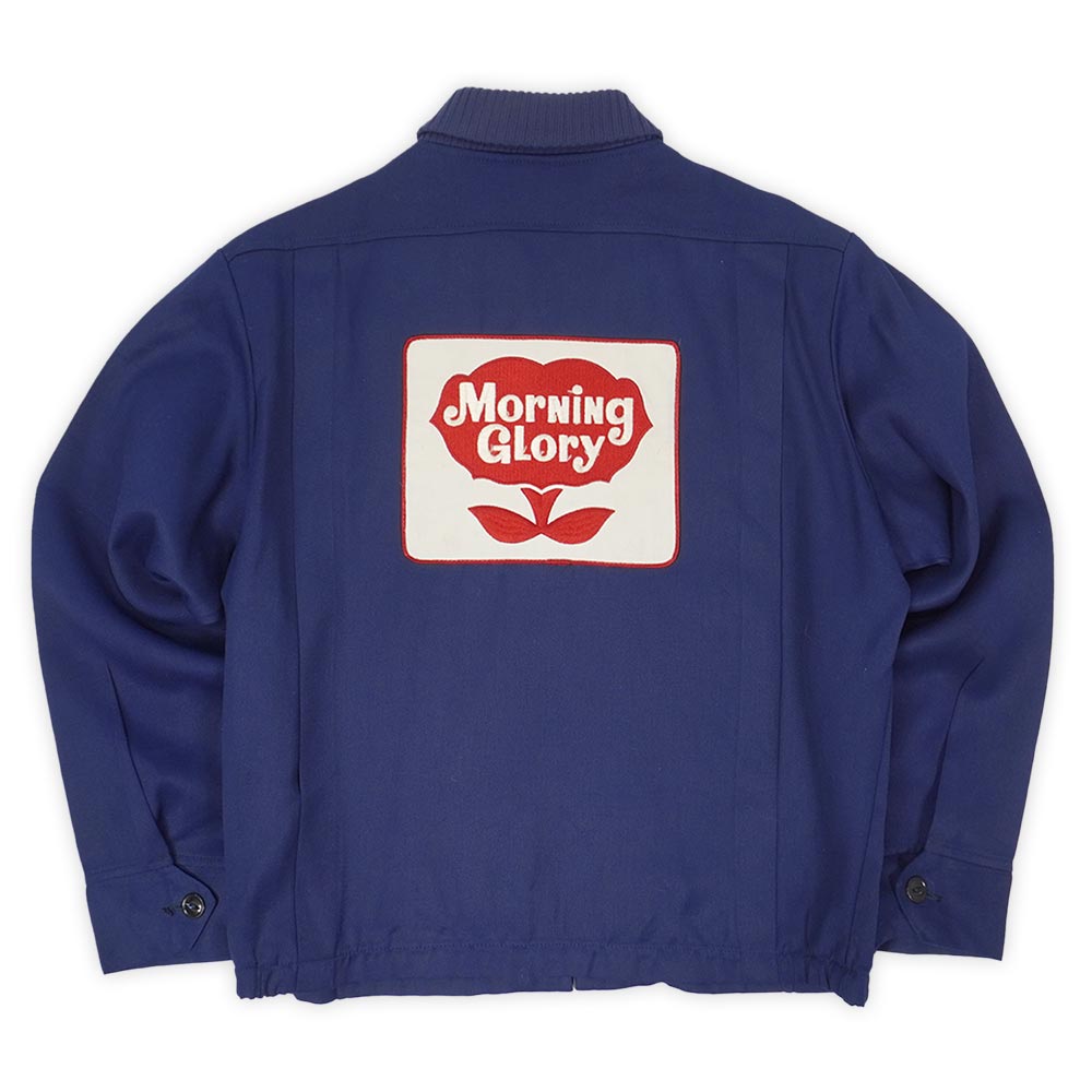 これぞアメリカ古着という仕様のワークウェアで通にはお馴染みのブランドですが、こちらはニットリブの襟が目を引く当店初入荷の稀少種。左胸と背面に縫い付けられた"Morning Glory"のワッペンや、左胸に施されたチェーンステッチのネーム刺繍も雰囲気抜群です。