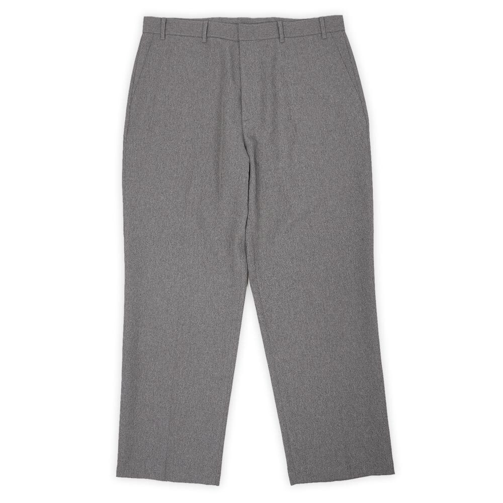 同社のノンデニムパンツと言えばスタプレが有名ですが、こちらはその名の通りシンプルなテーパードストレートシルエットのスラックスタイプ。杢感のあるグレーは非常に扱い易く、使用感の少ない上々のコンディションも見逃せません。