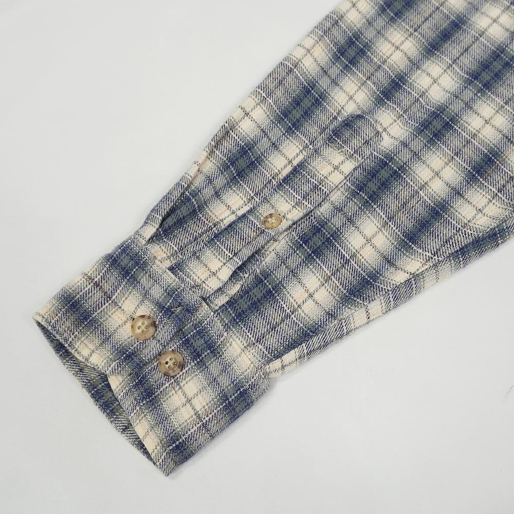 落ち着いた配色のオンブレチェック柄が目を引く、雰囲気の良いコットンフランネル地で仕立てられた一枚。バランス良くお召いただける方が多い均整のとれたシルエットも嬉しいおすすめの一枚ですので、是非この機会にご検討ください。