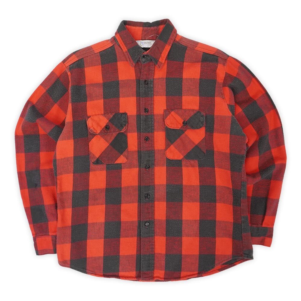 80's FIVE BROTHER ブロックチェック柄 ヘビーネルシャツ "RED×BLACK / MADE IN USA" [mtp03541502348551]