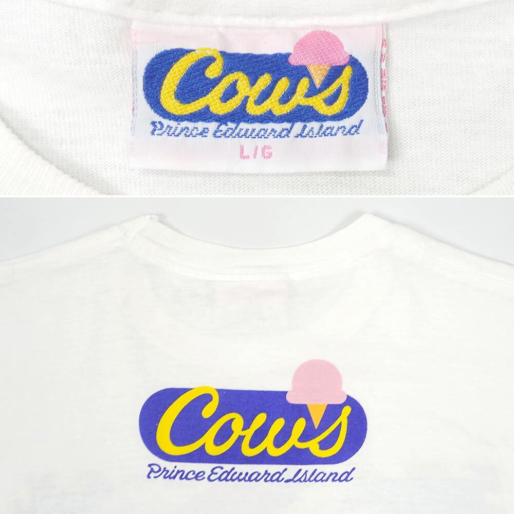 古着界隈でアイスクリーム屋のマーチと言えばBEN & JERRY'Sが有名ですが、こちらはプリンスエドワード島発祥でカナダで最も人気のショップ『カウズ』の物。袖口・裾ともにシングルステッチ縫製で丸胴仕様のボディはカナダで造られた自社製の物で、肩の力が抜けた牛のアートワークは雰囲気抜群です。