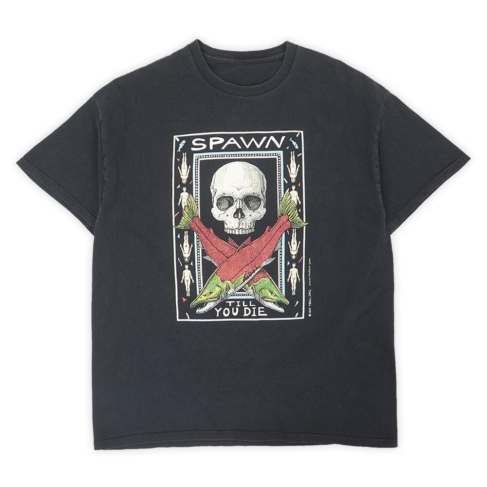 年々お探しの方が増えているレイ・トロール物ですが、こちらにプリントされているのは2000年以降の作品群の中でも名作と言われる『SPAWN TILL YOU DIE』。タグ欠損ですがXLサイズ相当の均整のとれたサイズバランスです。