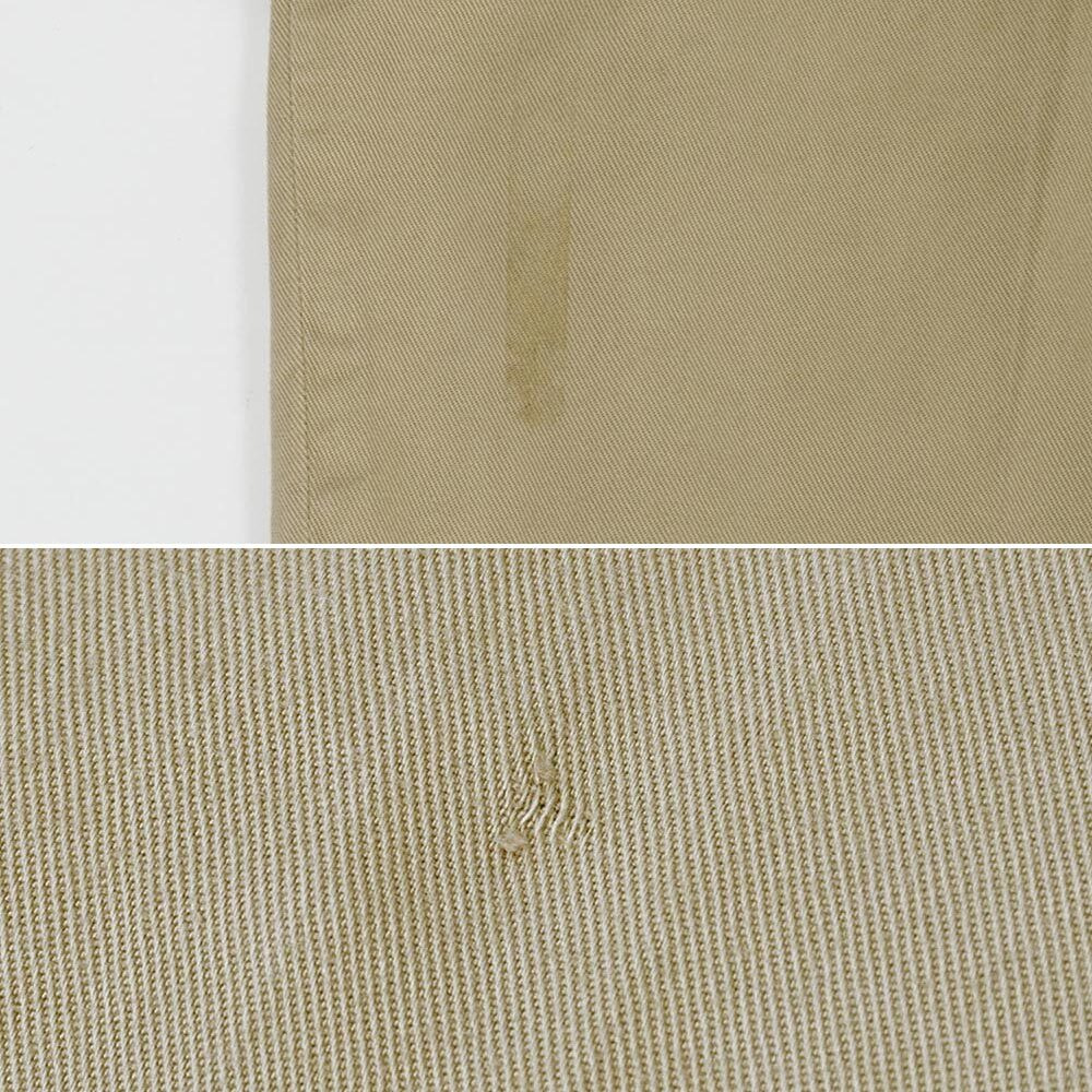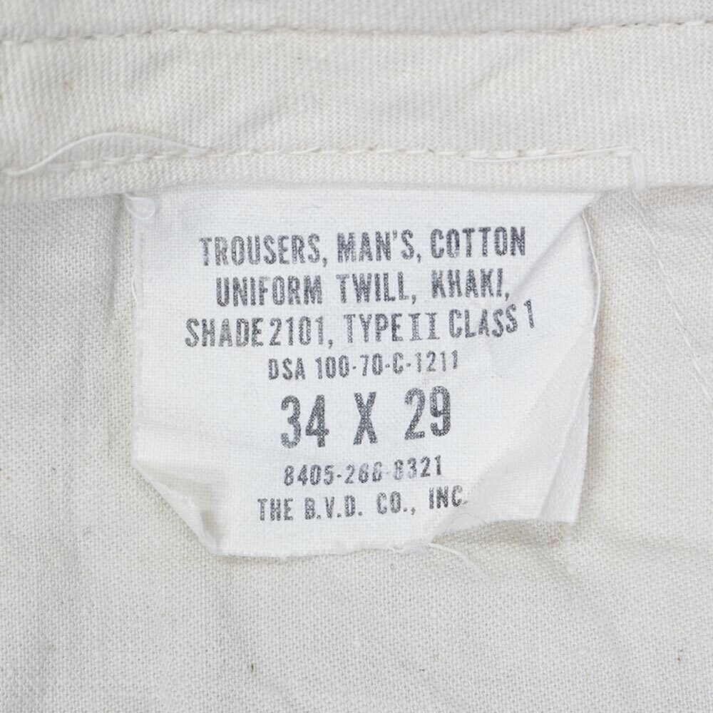 『軍チノ』の愛称で知られる銘品ですが、こちらは1970年にアメリカ海兵隊(USマリンコープ)に官給された個体。フラップ付きのバックポケットやコットンツイルの生地感など、同年代のARMYの物とは異なるディテールが光ります。