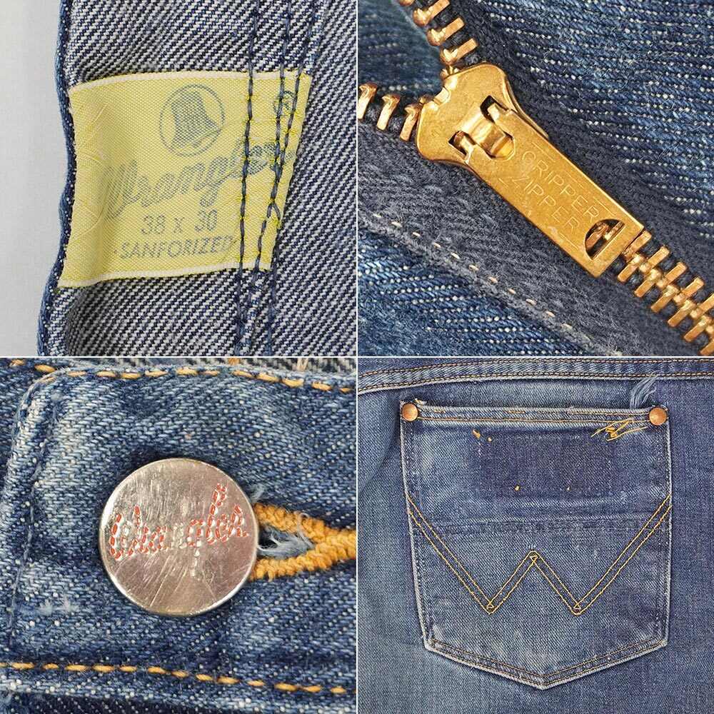 Levi'sやLeeと比べ圧倒的に玉数が少ないラングラーですが、こちらはUSA製表記の入らないプリントの斜めベルタグを搭載した稀少な初期の13MWZ。同年代の11MWZよりもやや太めなストレートシルエットが特徴で、アルミ製のトップボタンやUFOリベット、真鍮製のグリッパージップなどのディテールも魅力です。