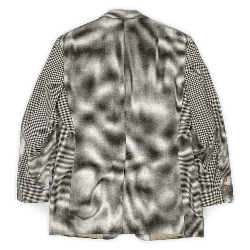 ハウンドトゥース柄が目を引くサマーウールのようなファブリックで仕立てられたUSA製のオールド物。形の良いノッチドラペル・2つ釦・センターベントといったディテールで、冬場以外のオールシーズン着用いただけるおすすめのジャケットです。