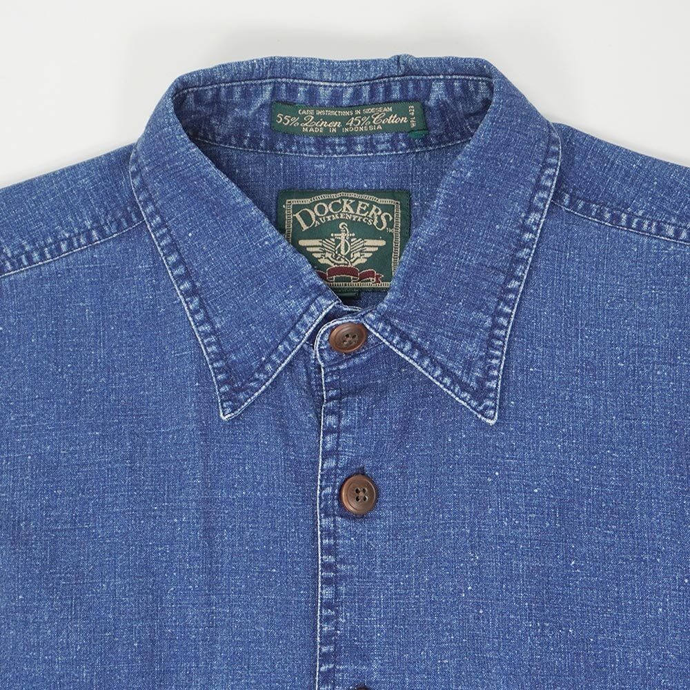 90's DOCKERS インディゴ染め ワークシャツ "LINEN × COTTON" [mtp03542601958663]