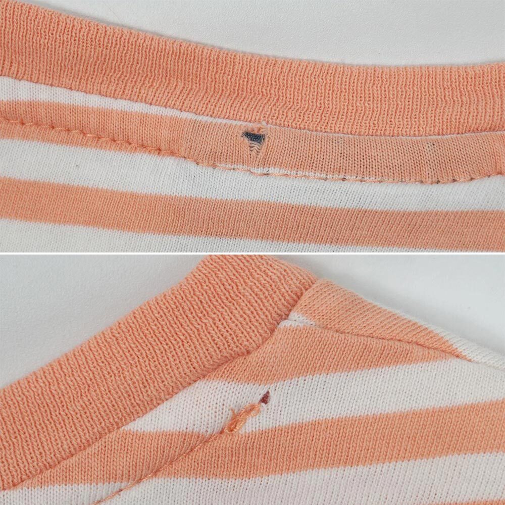 程良いピッチのボーダー柄と、お馴染みのロゴ刺繍が添えられた胸ポケットが魅力の定番アイテム。ピンク寄りの淡いオレンジは様々なボトムスとよく合いますので、是非この機会にご検討ください。