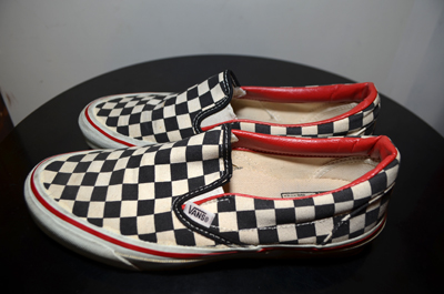 1990年代製VANSのチェッカーフラッグ柄のスリッポンになります。サイズ表記は希少な9です。非常にゴールデンサイズですね。スリッポンの中でも非常に人気のチェッカーフラッグというのもお探しの方多いかと思います。状態も僅かなソール減り(ギリギリUSA製表記が見えます)・ソール汚れ・履き口のレザー箇所の僅かな亀裂がありますが使用感の少ない箱付きになります。もちろん劣化などもありません。詳細は画像をご覧ください。古いVANSもサイズ・状態を含めて良いものはホントに見つからないアイテムですのでお探しの方是非いかがでしょう?
