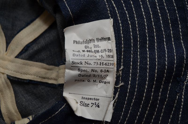 1938年製US ARMYのDENIM HATの、ペーパータグの残るデッドストックです。サイズ表記は7 1/4と、希少な大きめサイズです。40'sのものですら被れるサイズはなかなか見かけませんので、今回ご紹介する30'sのものとなると尚更です。生地感も40'sと比べさらに荒々しく、使い込んでいけば良い色落ちをすることは間違いないでしょう。今後もこの状態の30'sデニムハットをご紹介できる機会はなかなかありません。お探しの方は是非この機会にどうぞ。