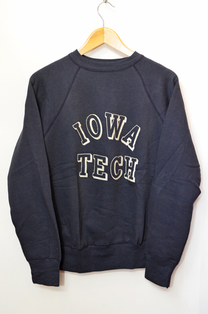 1950年代製、大変稀少なデッドストックのヴィンテージスウェットです。水が通ってませんので、古いスウェット類の泣き所である着丈の縮みが一切なく、非常に綺麗なシルエットが楽しめる一着。フロントには『IOWA TECH』のフロッキープリントが入っております。また、お色がネイビーですので今後着込むごとにエイジングを楽しんでいただけます。このように条件の揃ったデッドストックのヴィンテージスウェットはなかなか見つかりません。お探しの方はこの機会に是非いかがでしょうか。