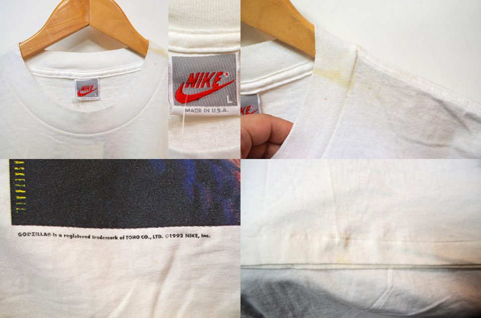 当時ナイキのCMで放送され話題となったゴジラvsチャールズ・バークレーのプリントTシャツです。2000年以降に復刻が発売されておりますが、やはりオリジナルは別格。保管時についたシミ汚れが見られますが、フラッシャー付きのデッドストックは非常に稀少。90's NIKEの中でも大変珍しい一着ですので、コレクターの方にもおすすめです。お探しの方はこの機会に是非いかがでしょうか。